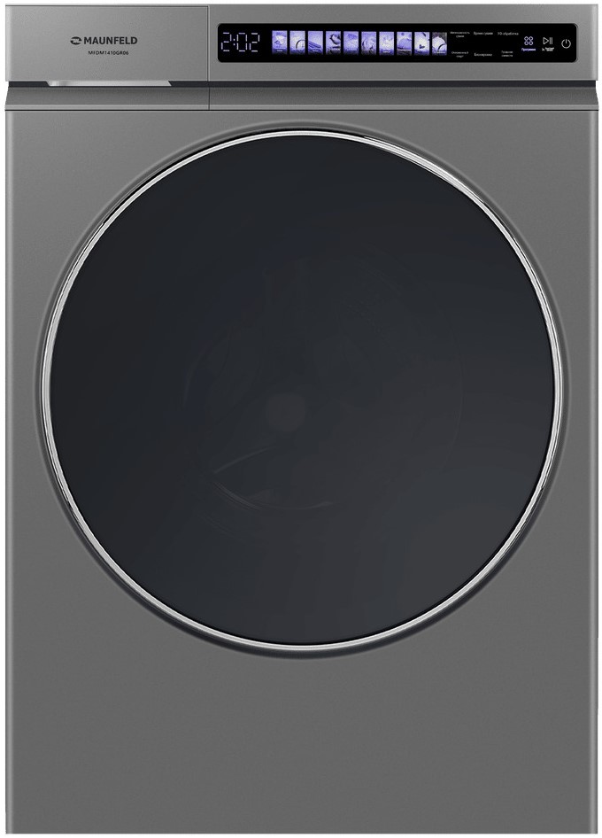 Сушильная машина Maunfeld MFDM1410GR06 представляет собой продуманное сочетание строгой эстетики и практичных технических решений, выполненное в сдержанном сером оттенке, который легко впишется в интерьер современной прачечной или хозяйственной зоны. Высокая тильность корпуса и аккуратные линии передней панели создают ощущение завершённости: прочный барабан из нержавеющей стали с ребрами жёсткости не только придаёт визуальную солидность, но и гарантирует равномерное перемещение белья без заломов и перегибов.