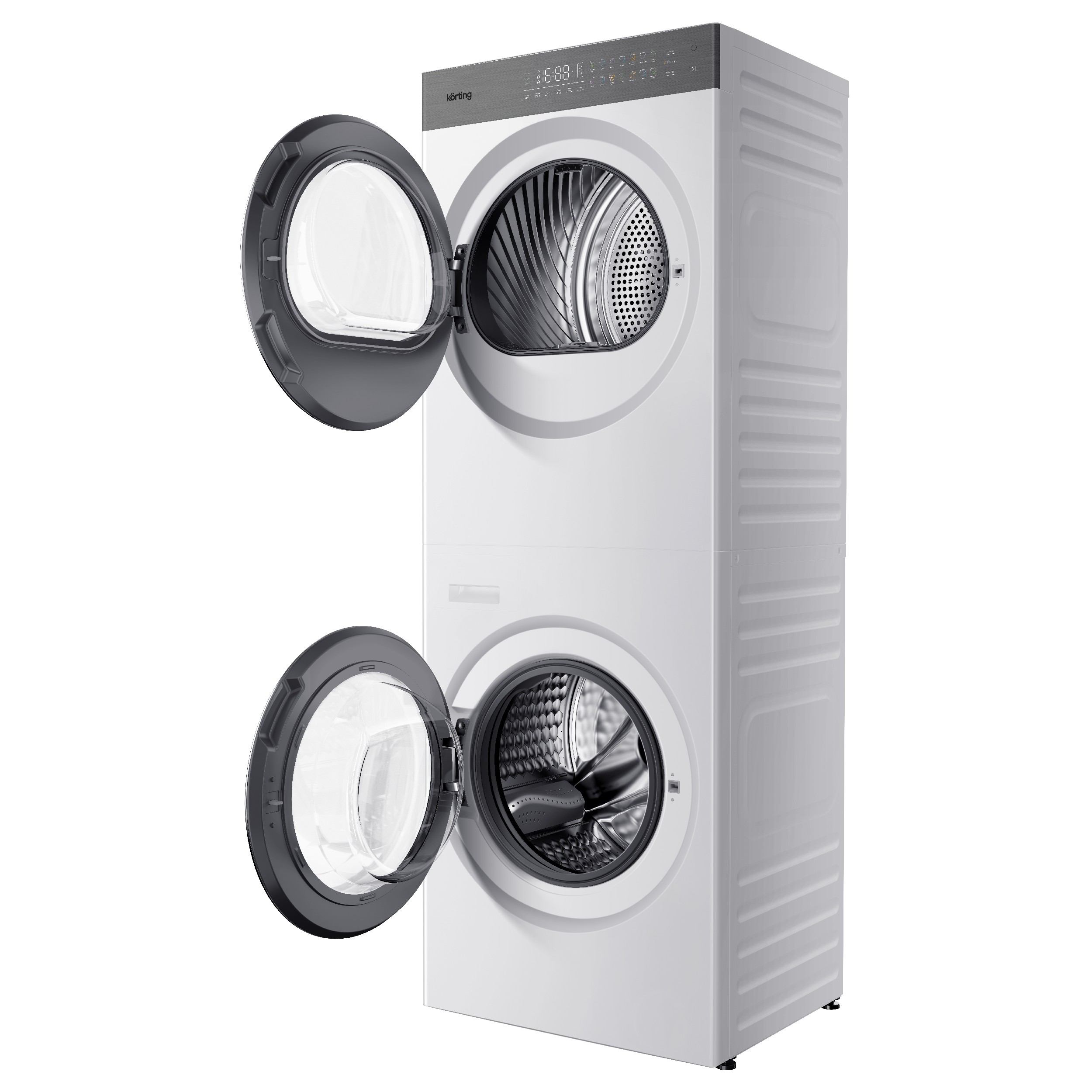 Стиральная машина с сушкой Korting KWD 601296 легко впишется в любой интерьер. Фасад диаметрально чистого оттенка дополнен белым люком и регулятором, что создаёт единое визуальное решение и делает прибор ненавязчивым акцентом комнаты. Глубина 58,5 см и ширина 59,5 см при высоте 168 см дают компактный вертикальный профиль, удобный для свободной установки на стандартной площадке; тип монтажа — отдельностоящий. Фронтальная загрузка обеспечивает эргономичную закладку и выгрузку белья: люк с петлёй слева открывается на 135° и упрощает работу с объёмными вещами, вплоть до максимальной загрузки 10 кг для стирки и 10 кг для сушки.