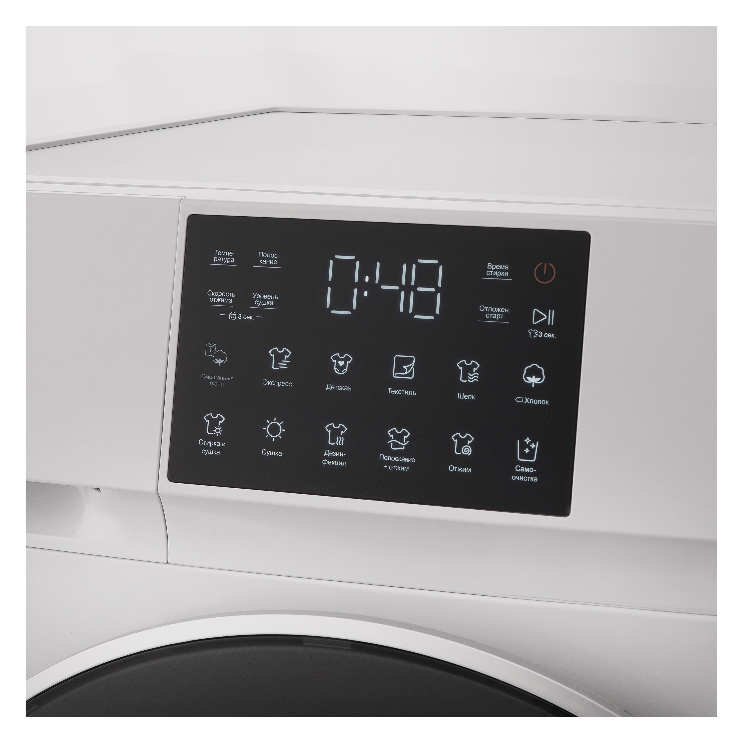 Машина обладает 12 режимами стирки, включая стирку с паром и позволяет подобрать оптимальный режим для любого типа белья. Максимальная загрузка белья для стирки составляет 10 кг, а для сушки — 7 кг. Скорость отжима варьируется от 400 до 1200 об/мин, что позволяет добиться идеального результата стирки и сушки.
