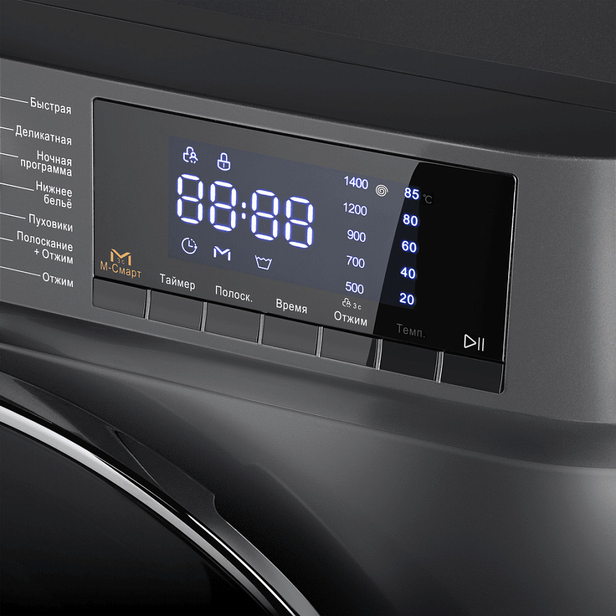 Отдельностоящая стиральная машина с инверторным двигателем делает модель MFWM127I02 эффективной и выгодной! One Touch – программы,определяющая вес белья и автоматически подбирающая время и температуру стирки