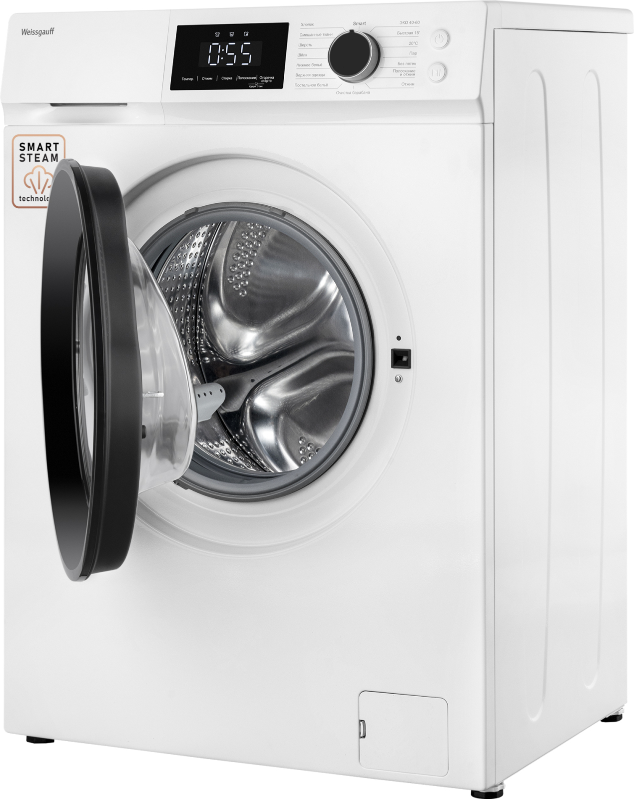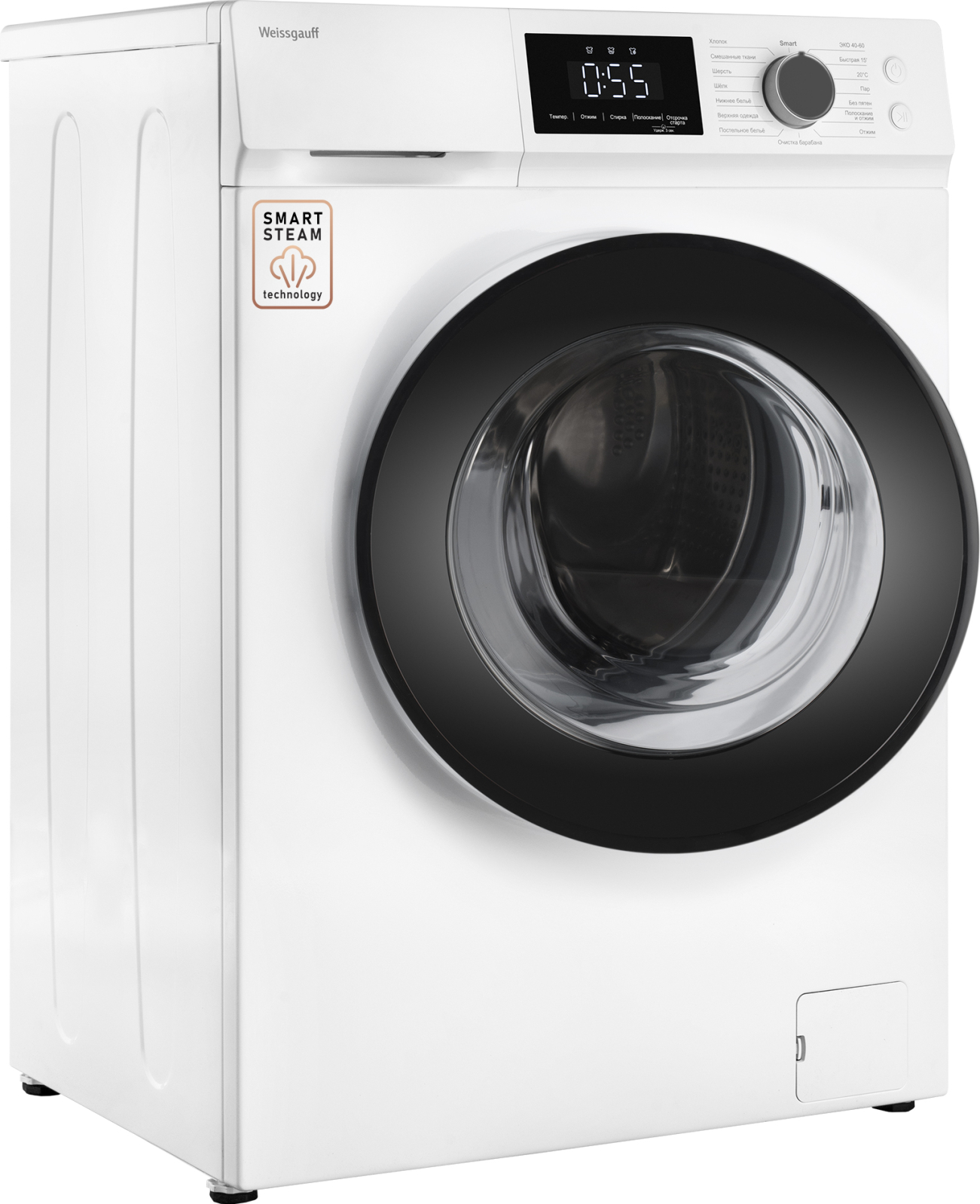 Отдельностоящая стиральная машина Weissgauff, оснащенная функцией пара и автопрограммой Smart, имеет показатели загрузки до 6 кг белья и скорости отжима до 1000 оборотов в минуту.