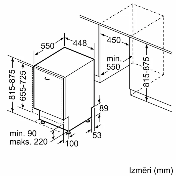 Размеры ниши для встраивания (В x Ш х Г), см 81.5-87.5 х 45-45.8 х 55