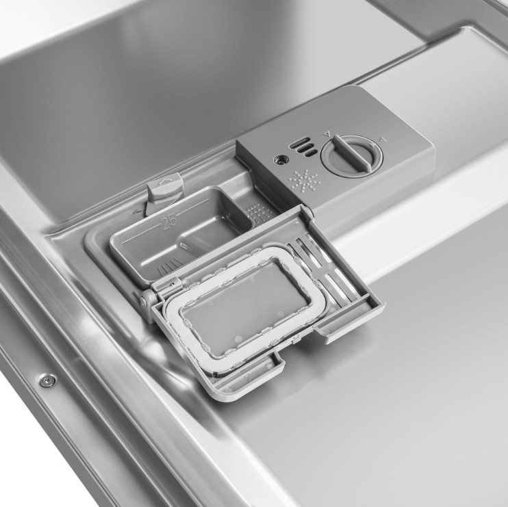 Модель оснащена тремя корзинами для посуды, верхняя из которых регулируется по высоте. Это позволяет оптимально распределить посуду, учитывая ее размеры и форму. Также в машине есть функции половинной загрузки и автоматического использования средств ALL IN 1, что делает ее использование еще более удобным и экономичным.