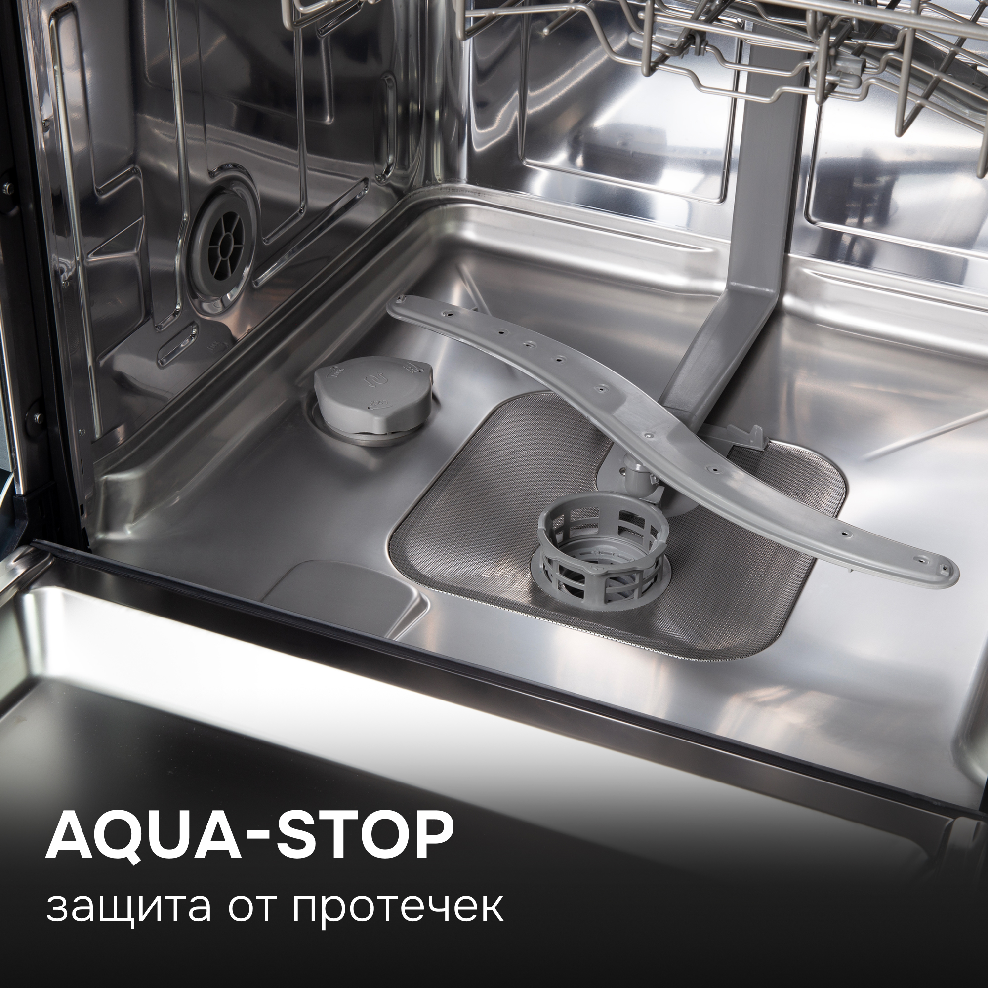 Система Aqua-Stop надежно защищает вас и ваших соседей от подтопления. Она состоит из двух компонентов: поплавкового выключателя в поддоне и специального электромагнитного клапана на заливном шланге. В случае протечки или нарушения целостности системы срабатывают клапаны безопасности, что и предотвращает разлив воды.