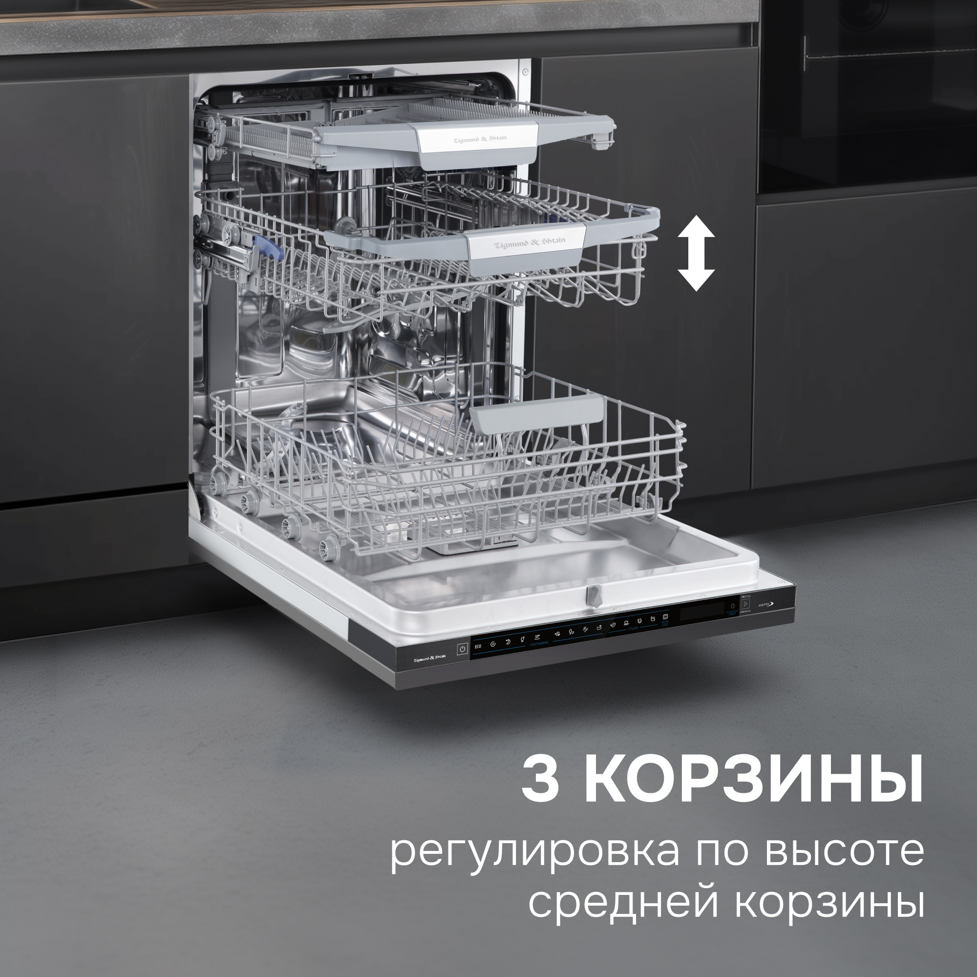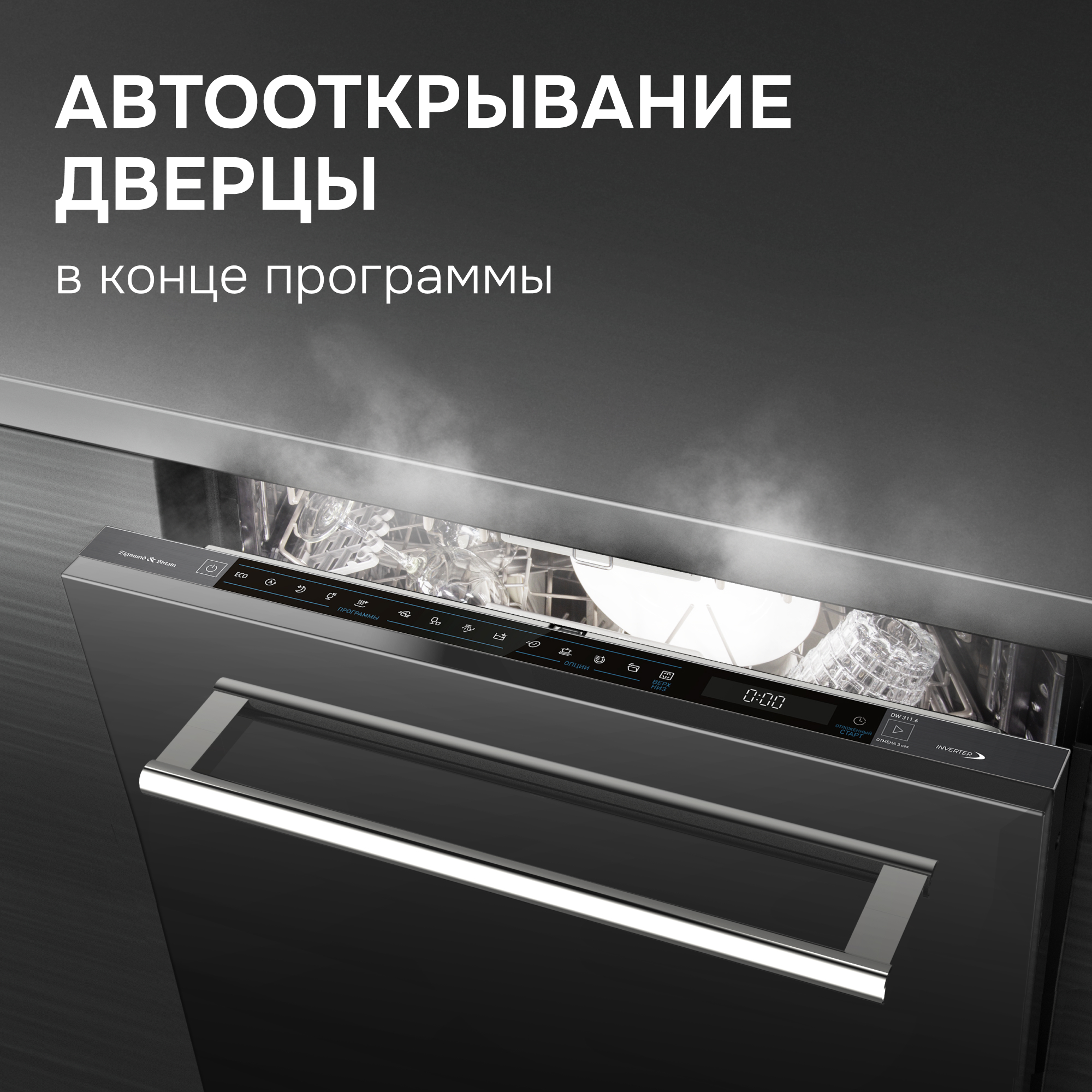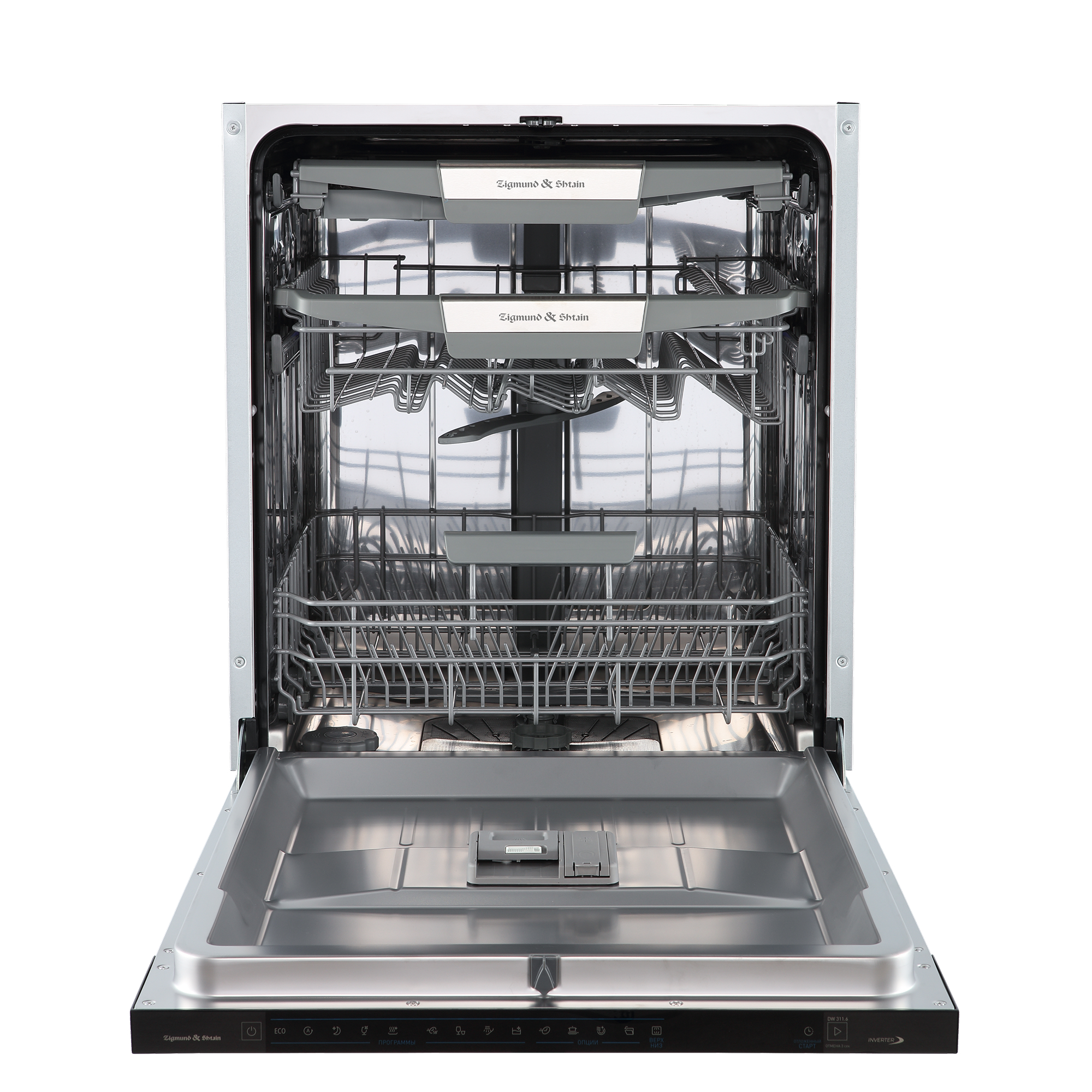 Посудомоечная машина Zigmund & Shtain DW 311.6 – с полностью сенсорным управлением и инверторной помпой – это многофункциональный и удобный в использовании помощник на кухне. Она легко отмоет и тщательно ополоснет 14 комплектов посуды, не оставив следов моющих средств.