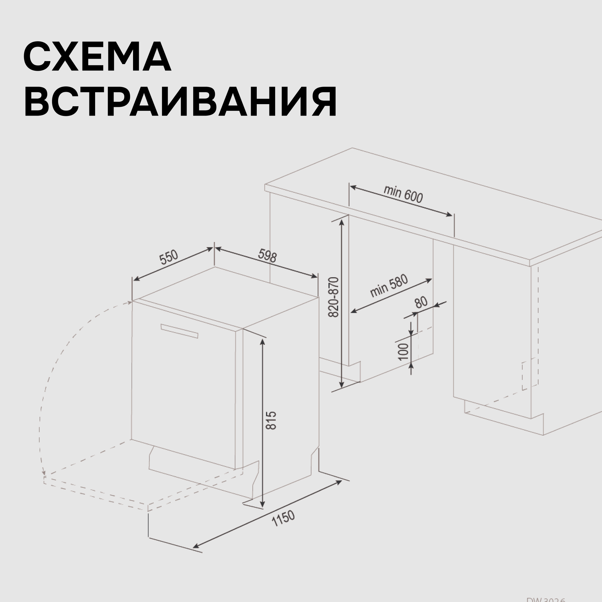 Габариты ниши для встраивания (ШхГхВ), мм 600*580*820