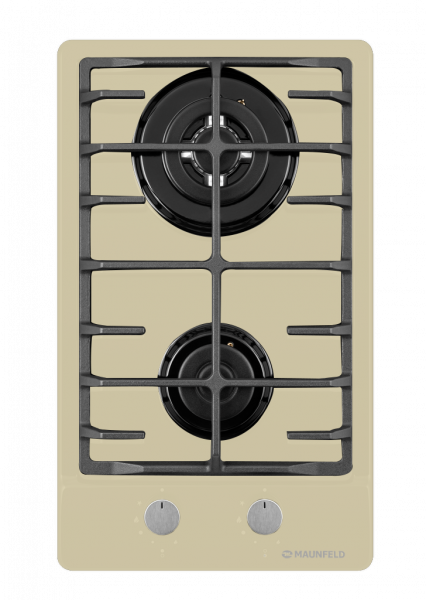 Панель выполнена из нержавеющей стали с эмалевым покрытием бежевого цвета. В данной модели установлены высококачественные итальянские горелки «Sabaf». Одна стандартная конфорка мощностью 1700 Вт и одна WOK-конфорка двойным пламенем мощностью 3000 Вт.