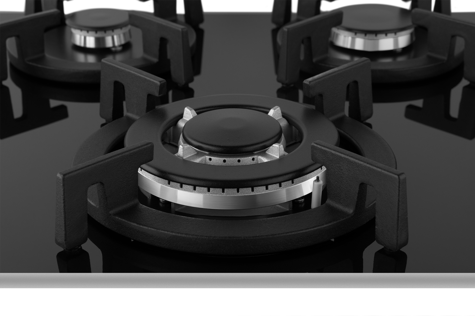 Автоматический электроподжиг, независимо встроенный в каждую из рукояток, позволит зажечь любую конфорку за долю секунды, всего одним нажатием и поворотом руки, не прибегая к дополнительным приспособлениям!