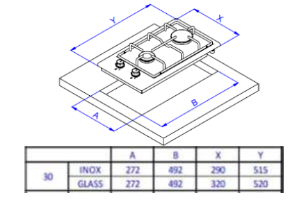 Мощность конфорок: 1*2,9/1*0,9 кВт