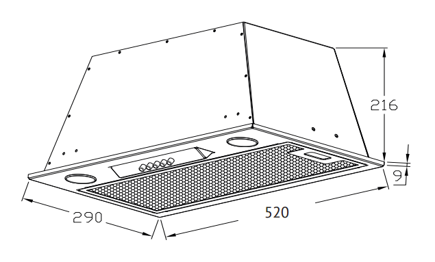 Размеры прибора (ВхШхГ): 216 x 520 x 290 мм