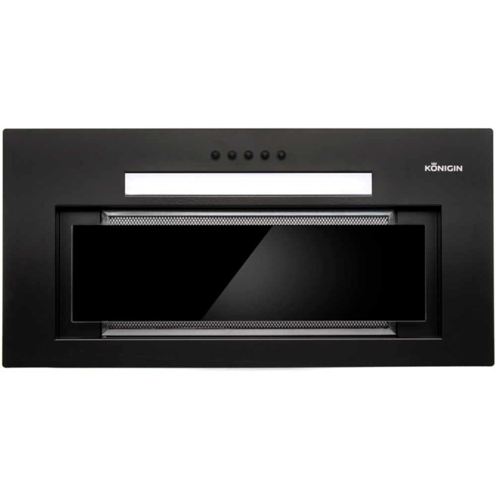 Полностью встраиваемая вытяжка. Стильное сочетание закаленного стекла и окрашенной стали. Декоративный люк из закаленного стекла скрывает пятислойный алюминиевый, жироулавливающий фильтр с усиленной конструкцией