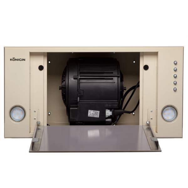 Декоративный люк из закаленного стекла скрывает пятислойный алюминиевый, жироулавливающий фильтр.