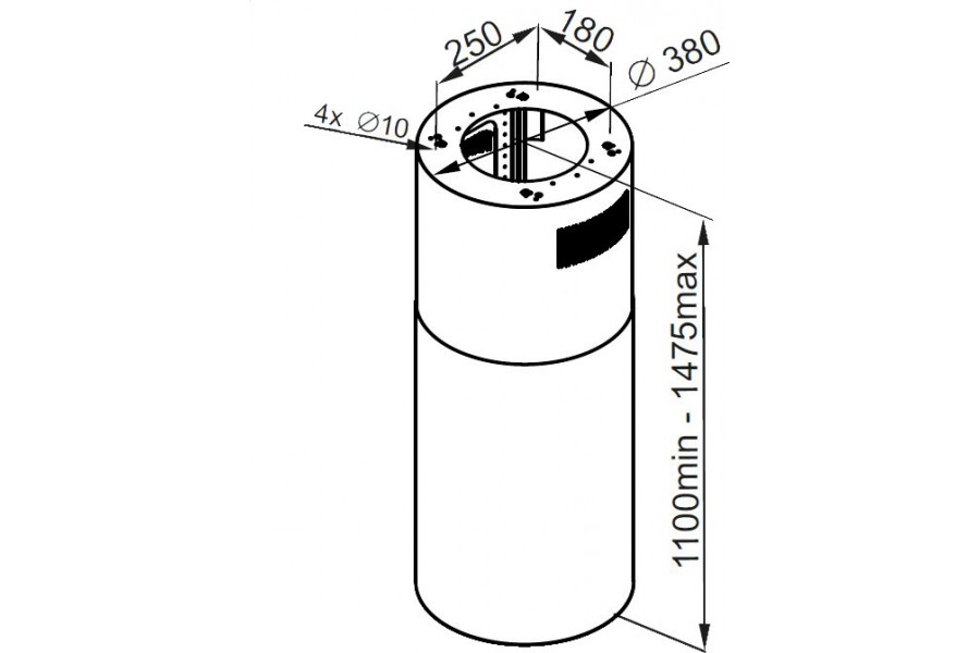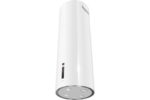 Корпус цилиндрической формы, выполненный из нержавеющей стали, крепится на потолок над поверхностью плиты. В нижней части вытяжки находится алюминиевый многослойный жироулавливающий фильтр. Он легко вынимается и полностью разбирается, что сильно упрощает чистку.