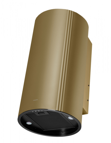 Корпус цилиндрической формы, выполненный из нержавеющей стали с термостойким покрытием, крепится к стене над поверхностью плиты. В нижней части вытяжки находится алюминиевый многослойный жироулавливающий фильтр. Он легко вынимается и полностью разбирается, что сильно упрощает чистку.