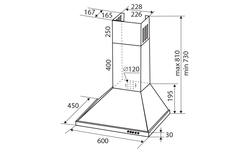 Диаметр воздуховода, мм 120