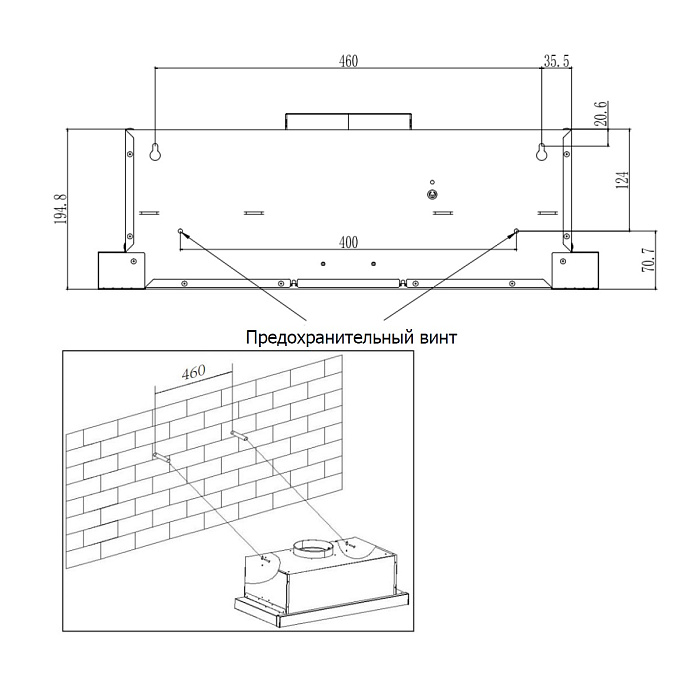 Размеры встраивания (ШхГxВ) (мм): 460х195(ширина х глубина, мм)