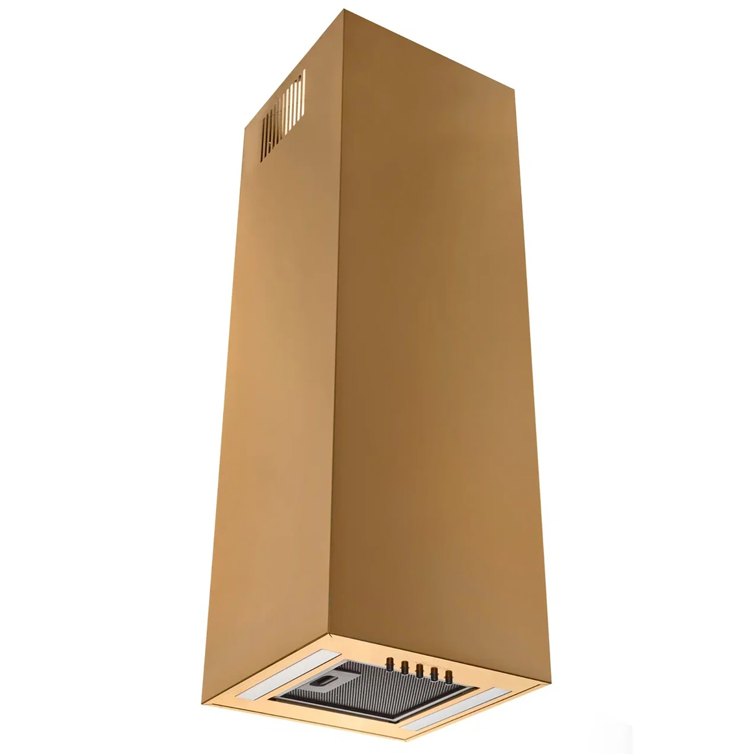 Удобное механическое управление (мягкое нажатие), делает управление простым и точным. Мощное современное светодиодное освещение в виде 2-х полосок Led является энергоэффективным, прекрасно освещает рабочую зону, дарит яркий и приятный глазу свет. Корпус вытяжки выполнен из высококачественной нержавеющей стали окрашенной в золотой цвет и обработан абсорбирующим слоем, поэтому его легко содержать в чистоте. Вытяжка состоит из одной части, имеет два выхода для воздуховода - вертикальный и горизонтальный.