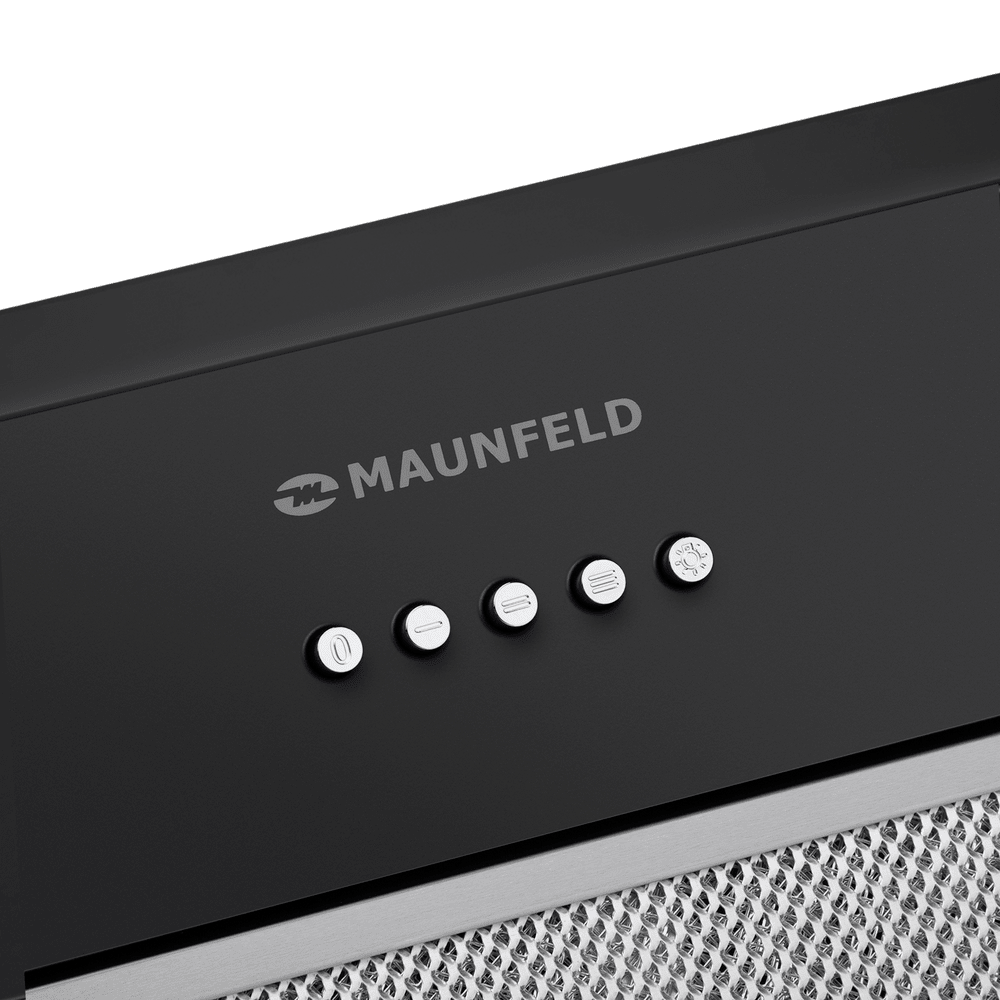 Maunfeld Cam 45 Black оснащена механическим управлением с кнопочными переключателями, что обеспечивает простоту и надежность в эксплуатации. Вытяжка предлагает три скорости работы, позволяя выбрать оптимальный режим в зависимости от интенсивности приготовления пищи. Светодиодное освещение с двумя лампами по 2 Вт каждая обеспечивает яркий и равномерный свет над рабочей зоной, что способствует комфортному приготовлению блюд.