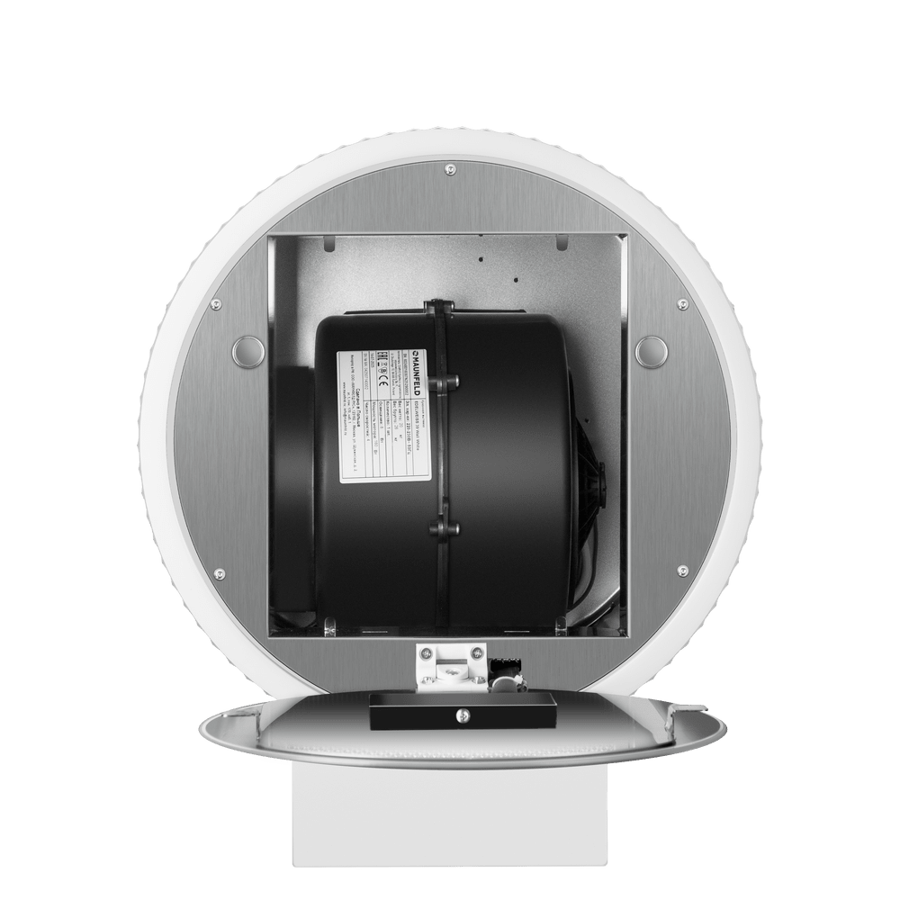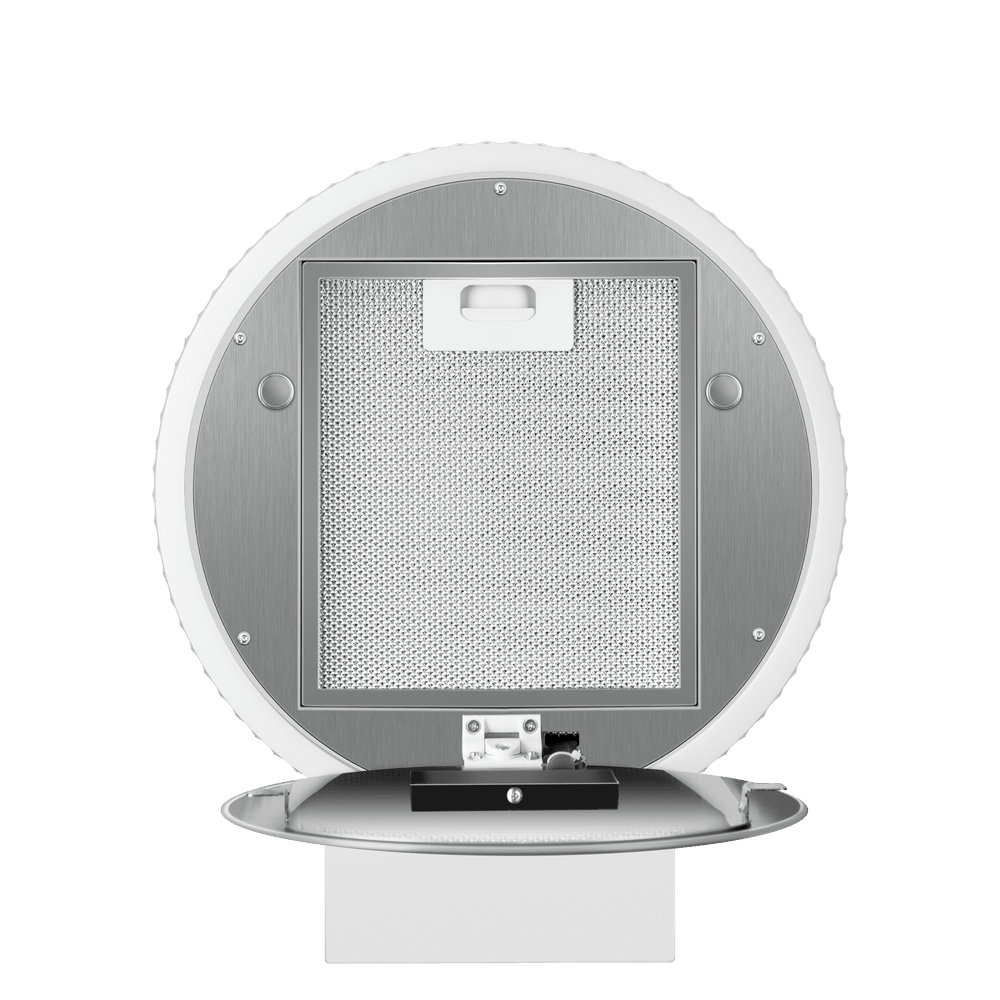 Мощность мотора составляет 260 Вт. Максимальная производительность вытяжки достигает 1270 м3/ч, что позволяет использовать ее на очень большой кухне. Тихая работа и высокая эффективность вытяжки обеспечиваются периметральным принципом втягивания воздуха и особой конструкцией. Уровень шума при самой высокой скорости работы всего 52 дБ.