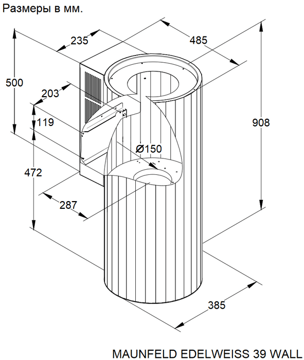 Диаметр воздуховода, мм 150