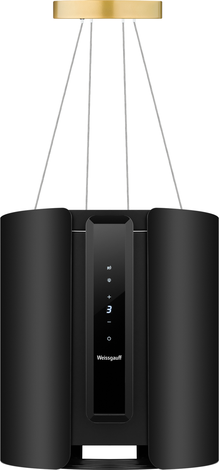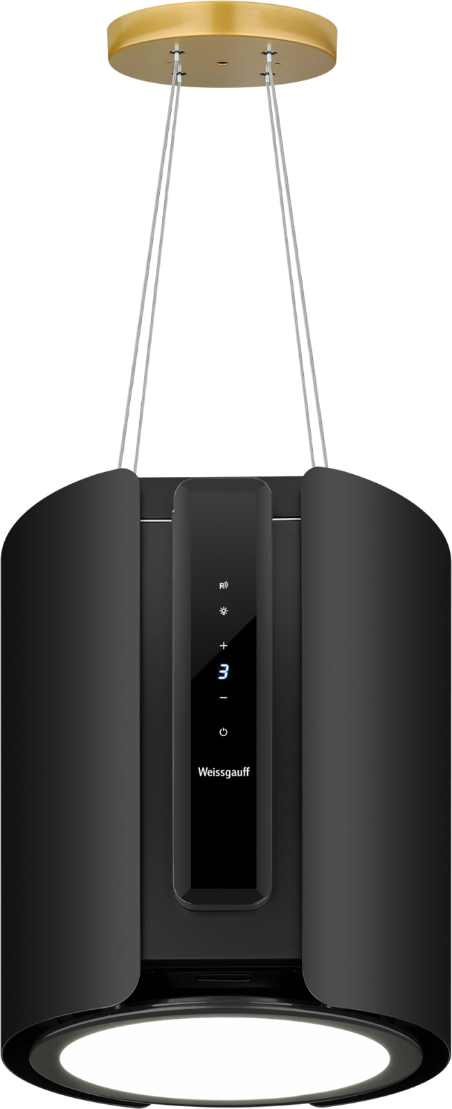 Цилиндрическая пристенная вытяжка Weissgauff, выполненная в чёрном цвете, оснащена высокоэффективным инверторным двигателем, снижающим уровень шума и повышающим производительность устройства, а также мощной лампой светодиодного освещения, призванной сделать более комфортной работу на кухне.