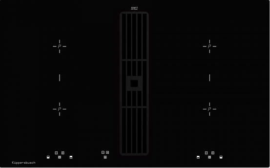 Варочная панель Купперсбуш KMI 8500.0 SR оснащена встроенной вытяжкой, функционирующей в режиме отвода воздуха и рециркуляции. Для отвода требуется проложить магистраль в вентиляционную систему. Прибор оснащён четырьмя скоростями работы: тремя основными и одной интенсивной. При последнем варианте производительность возрастает до 620 кубических метров / час.