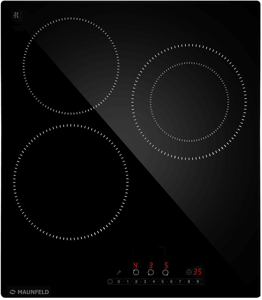 Электрическая варочная панель Maunfeld AVCE4535SDBK коллекции Модерн: тонкая рамка, ровная стеклокерамическая поверхность черного цвета и минималистичная зона управления создают визуально спокойный и профессиональный образ кухонного блока. Стеклокерамическая панель не только придает премиальный вид, но и облегчает уход: загрязнения удаляются быстро, не требуя агрессивных средств, при этом поверхность устойчива к температурным перепадам и механическому воздействию.