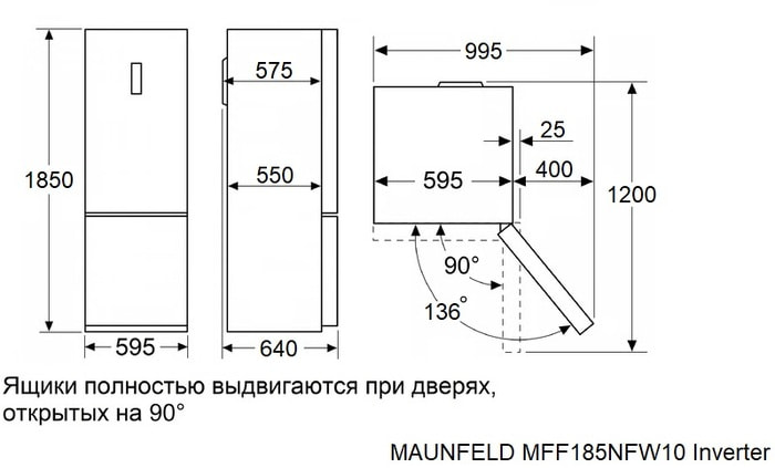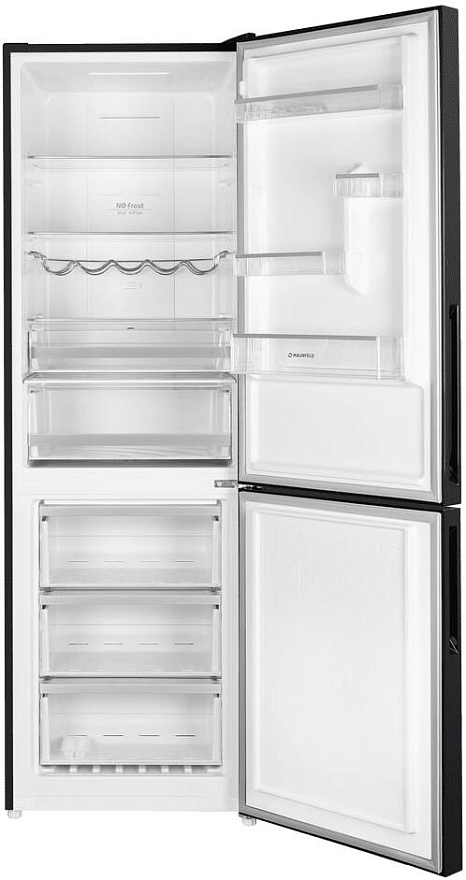 Холодильник Maunfeld MFF185NFSB10 Inverter – это прекрасное сочетание функциональности и стильного дизайна. Черный цвет корпуса и фасад из стекла придают ему современный и элегантный вид. Этот холодильник будет отлично смотреться в любом интерьере, будь то классический или современный стиль кухни. Устройство имеет две камеры и две двери, что позволяет удобно разместить продукты.