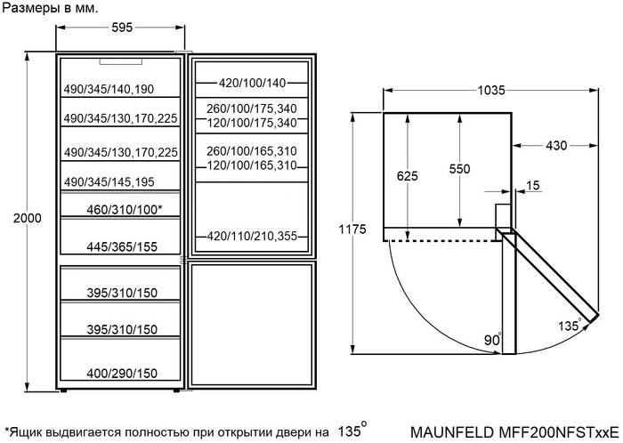 морозильное и холодильное отделения |