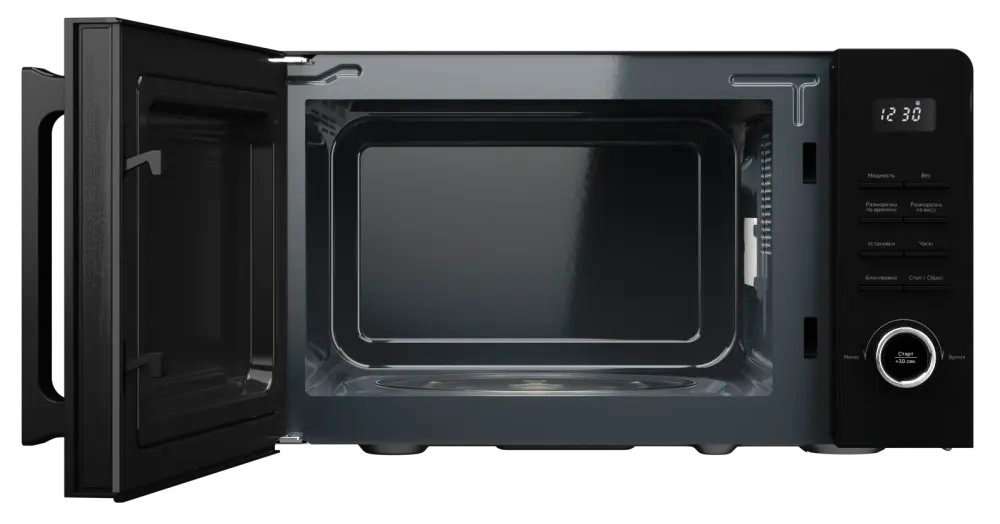 Внутренняя камера выполнена из эмали, что обеспечивает ее долговечность и легкость в уходе. Дверца микроволновки навесная, что обеспечивает удобство при открытии и закрытии. Защита от детей — это важная функция, которая делает использование печи безопасным даже в домах с маленькими детьми.