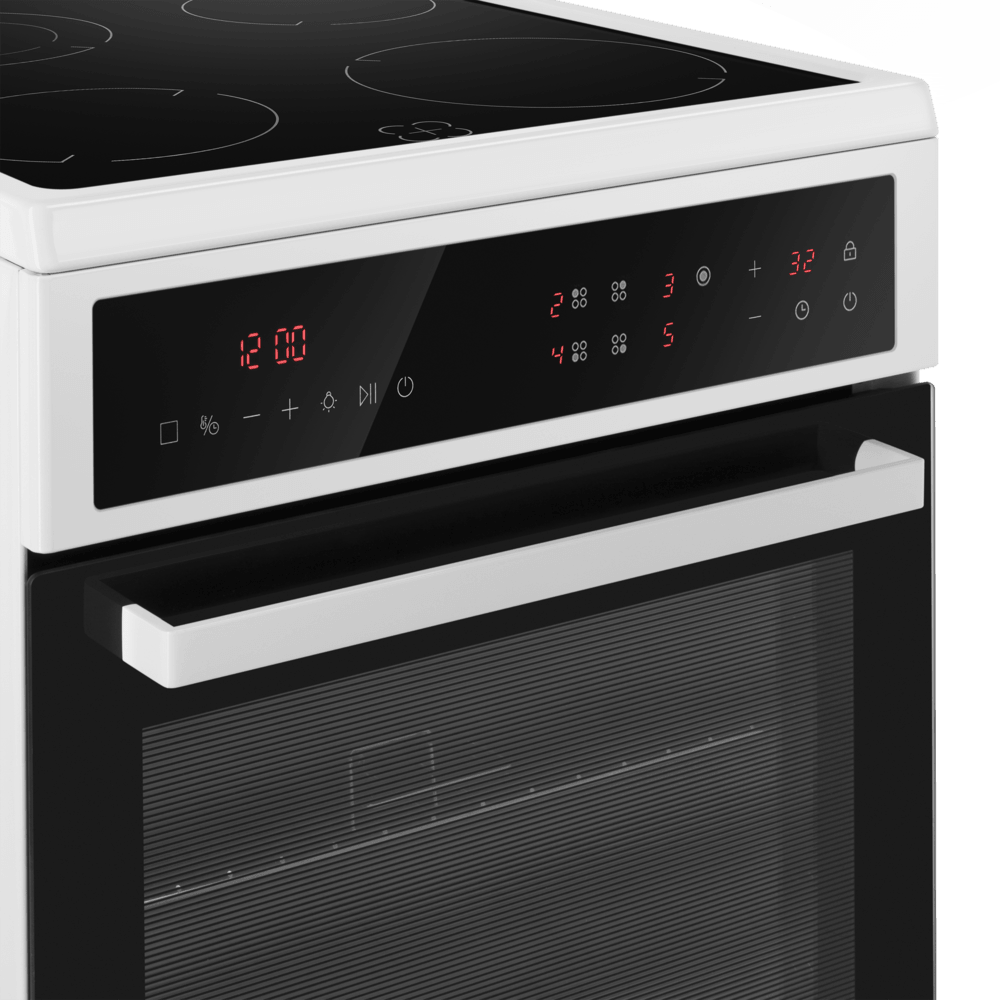 Стеклокерамическая варочная панель оснащена двухконтурной конфоркой, которая позволит готовить в посуде разного диаметра.