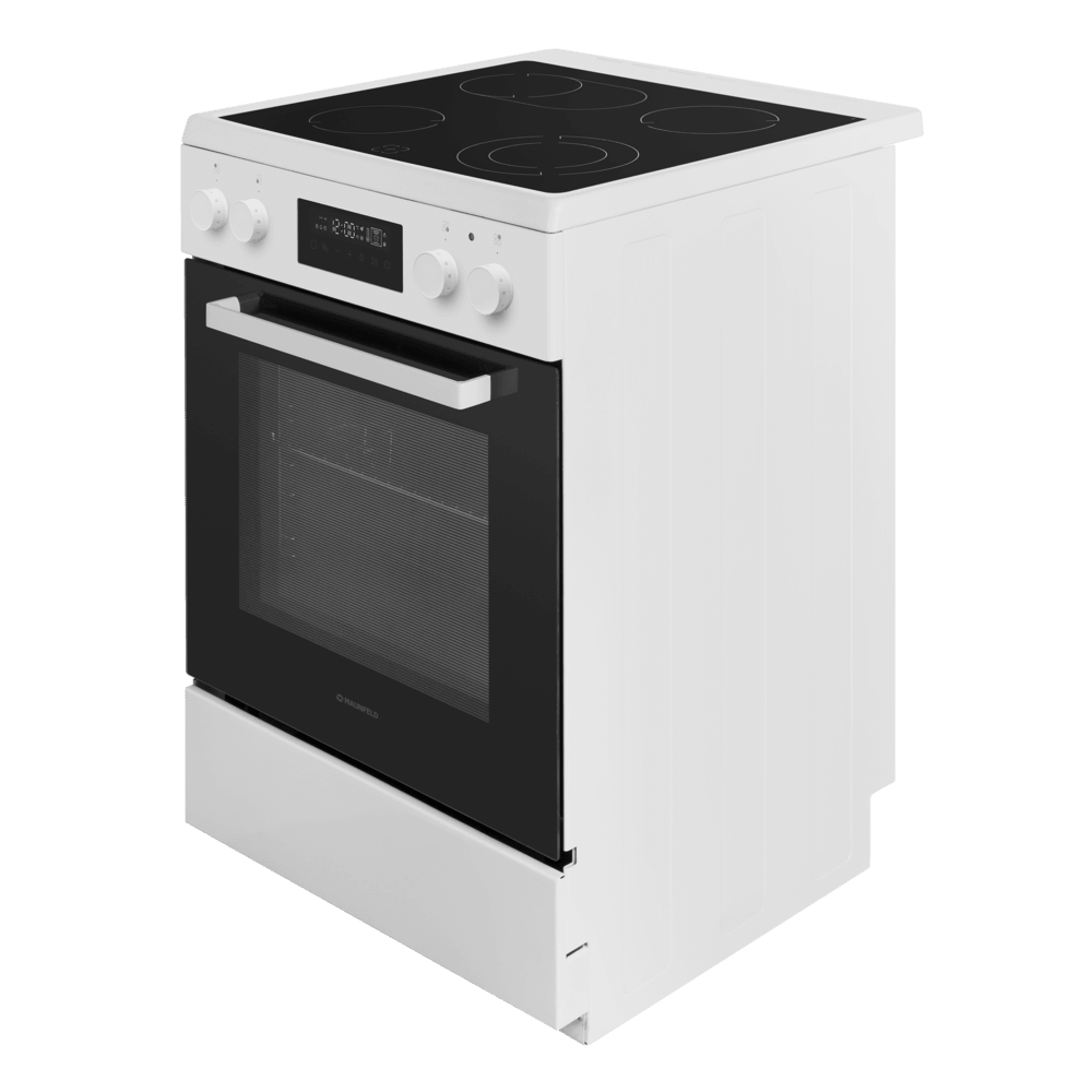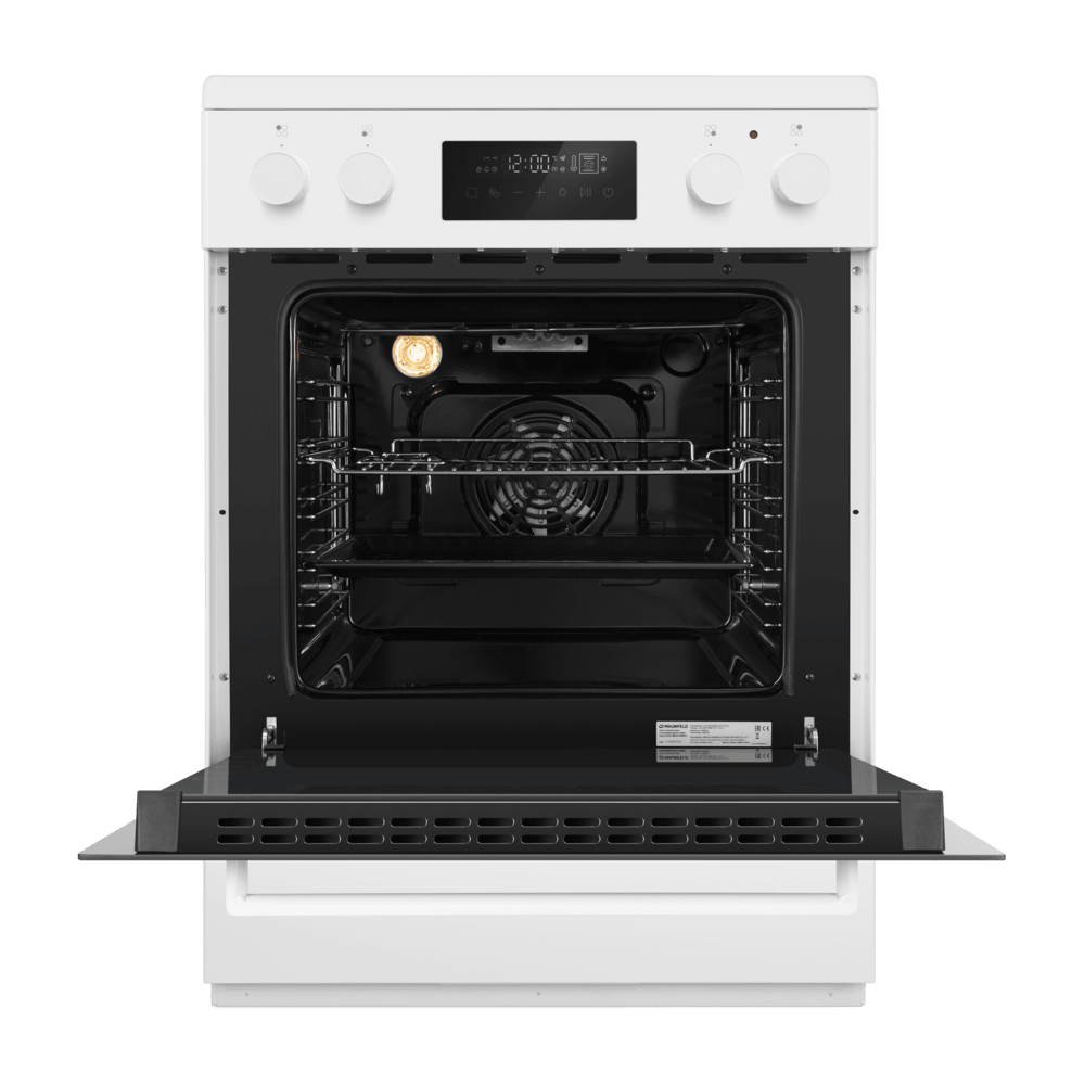 Электрическая плита MAUNFELD MEC611CW09TD выполнена в белом цвете. Стеклокерамическая варочная поверхность оснащена 4 конфорками с индикацией остаточного тепла, которая оповестит, если прибор не остыл до безопасной температуры. Камера духового шкафа покрыта специальной эмалью, а гидролизная очистка облегчит уход за прибором.