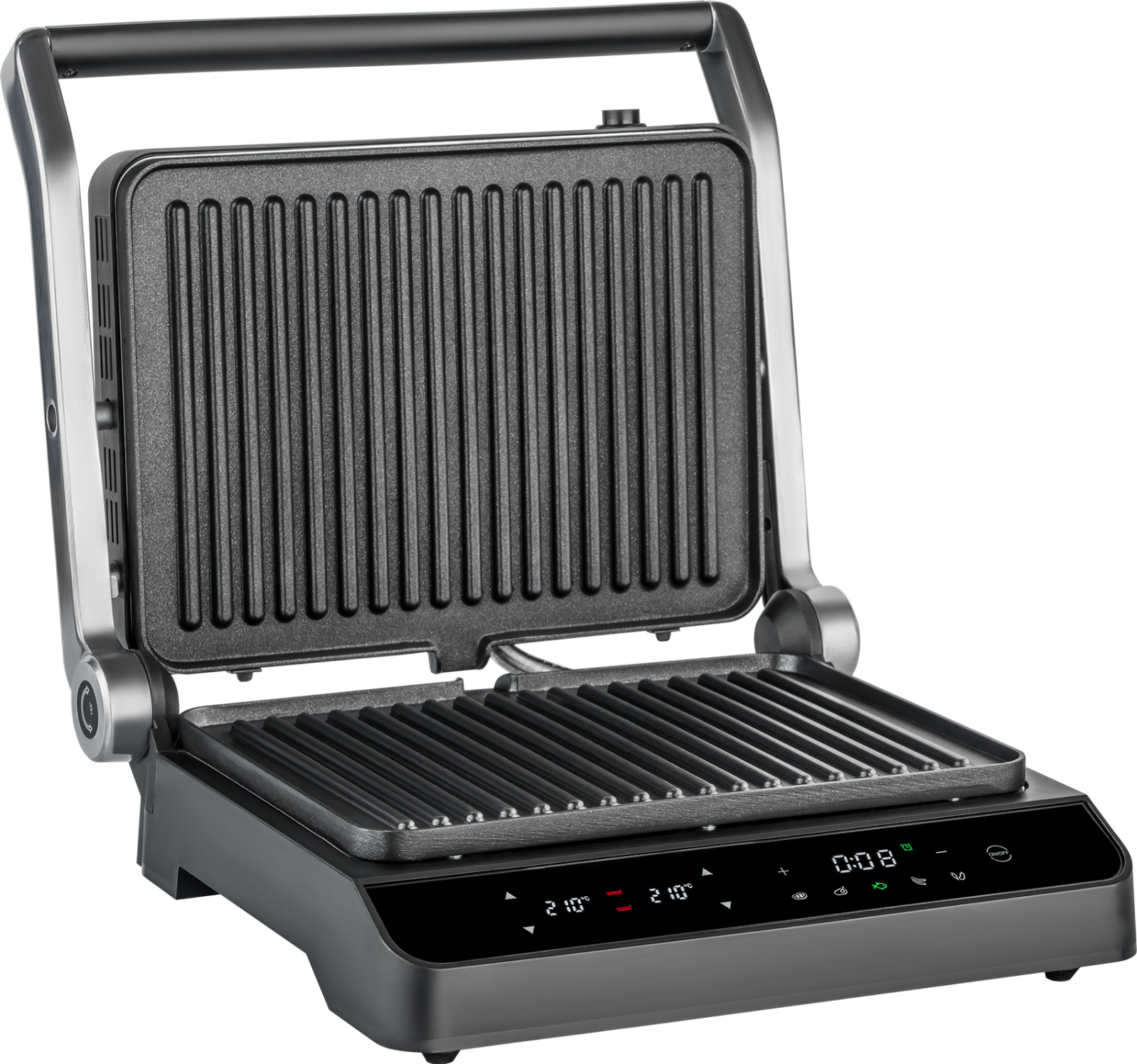 Полностью электронное управление, интуитивно понятное даже человеку, никогда ранее не работавшему с подобной техникой, сделает процесс запуска гриля быстрым и лёгким! Таймер с автоотключением, будет особенно удобен в случае, если вы хотите запрограммировать работу гриля на требуемый промежуток времени с последующим автоматическим завершением нагрева!