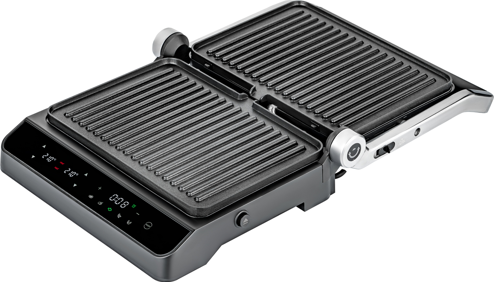 Максимальный угол раскрытия 180 градусов позволяет работать с данным устройством не только в режиме гриля, но и в режиме барбекю! Используйте сразу обе нагревательные панели в полностью раскрытом режиме, чтобы увеличить площадь приготовления!